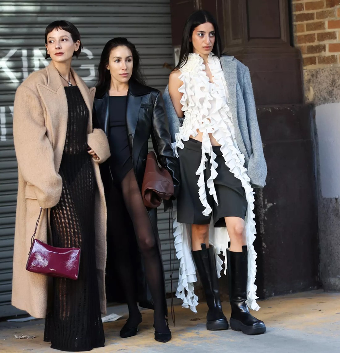 Romance is in the air and translating into sweet styling cues this season. Within jewelry, pearl drop earrings are up +14% in average weekly searches to last year and the ribbon choker is making a comeback at +82%. Velvet platforms are capturing attention at 160% to last year and the black organza dress is up +154% to last year, too.