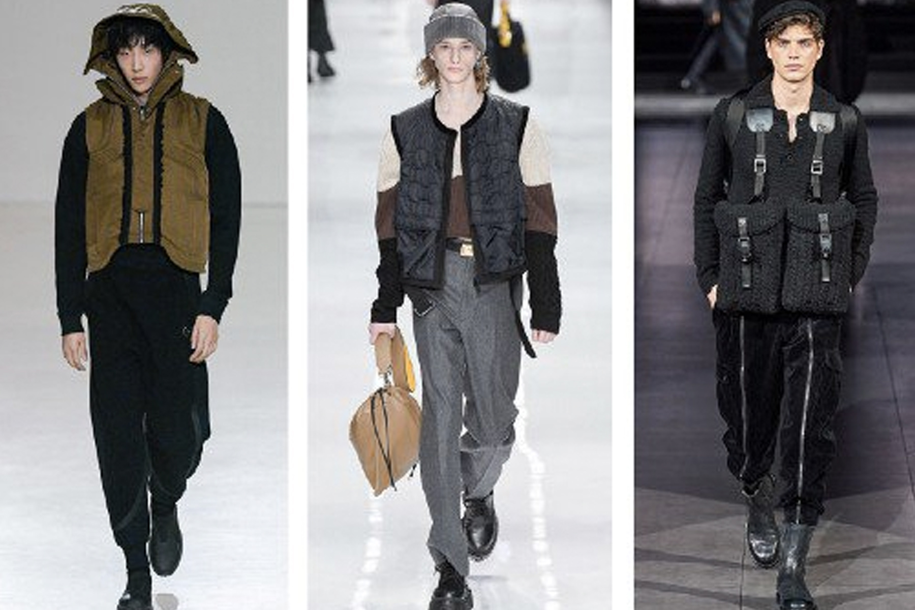 The functional outerwear of spring 2020 is hanging around for fall, replacing cargo pants and pocket-heavy pieces with quilted nylon vests and tailored pants for the urban dweller. Fendi and Nicholas Daley represented the essence of the trend best: a little form, a little function, and a lot of fashion.
