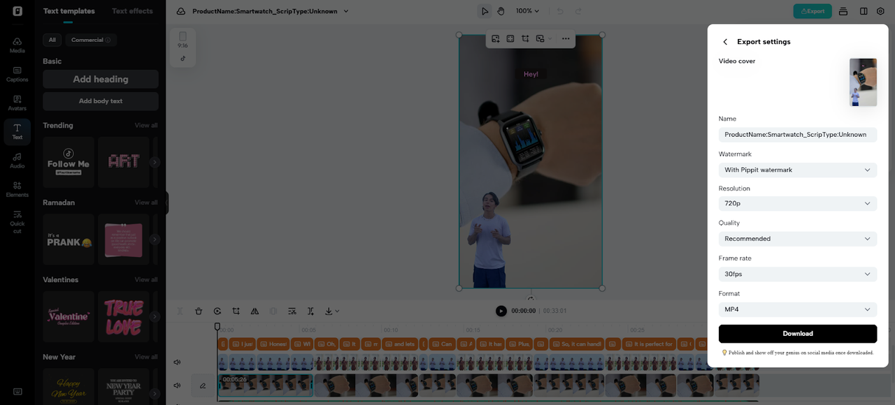 Artificial intelligence analyzes written text and automatically identifies key points. Important messages in notes are written in a video presentation as scenes. A script generation system is one in which thoughts are structured into clear, easily understood accounts. The AI video generator interprets bullet points and transforms them into coherent narratives. Visual layouts, such as icons, graphics, or animations, support each idea. AI avatars can explain as professional presenters. Captions are used to supplement verbal information and make accessibility to the audience more inclusive. This computerized system saves time that would have been spent designing slides and voice-overs. Pippit integrates these functions into a single streamlined environment.